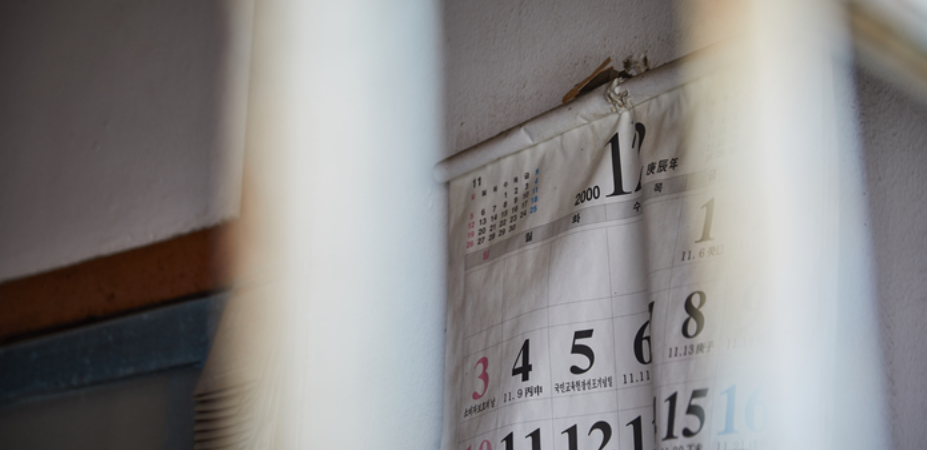 I hang a monthly calendar handed out by farmers' cooperative,